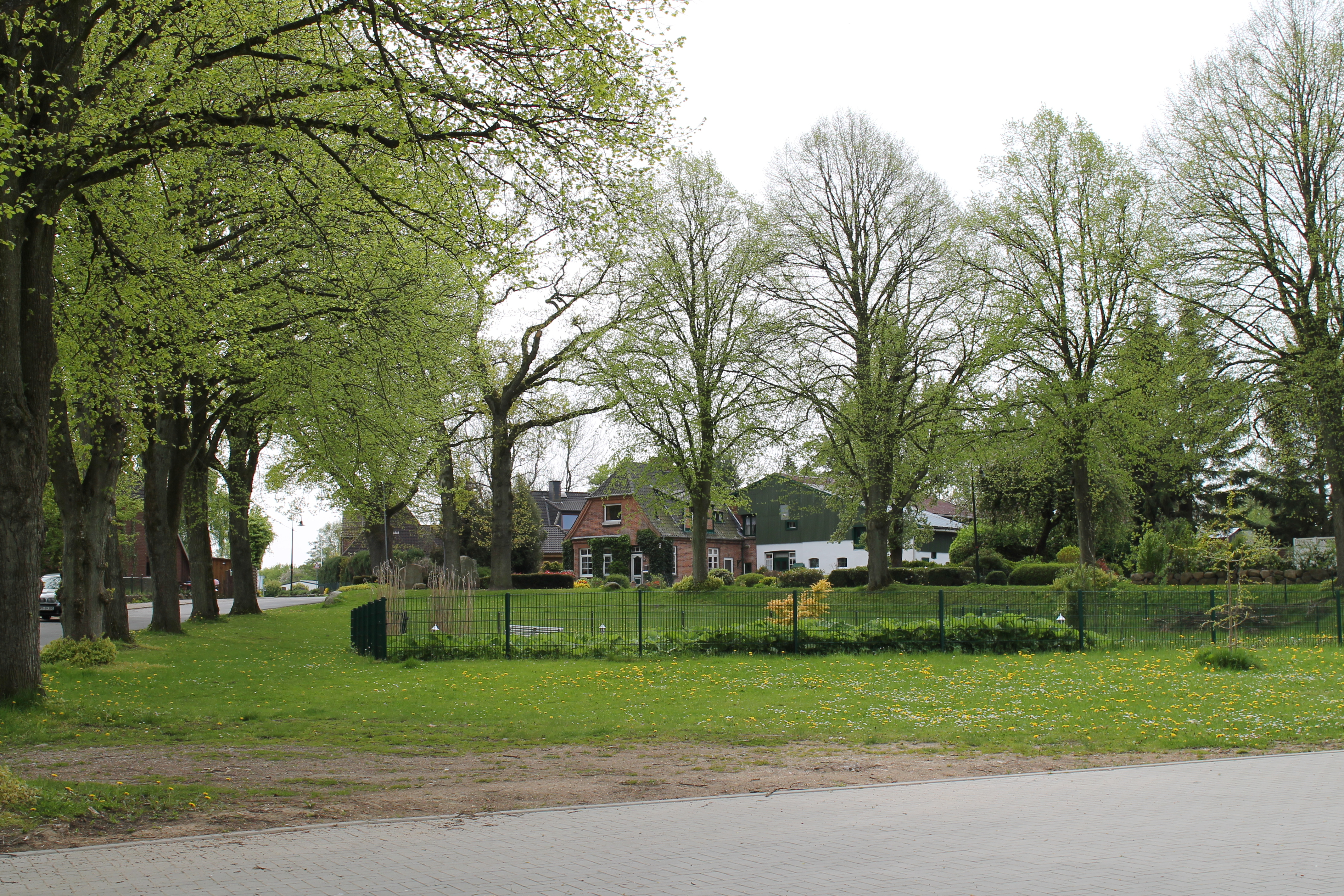 Im Ortsteil Neudorf bildet die Dorfplatz-Wiese mit dem Feuerlöschteich den Dorfmittelpunkt. Die großblättrigen Sumpfpflanzen am Ufer des Teiches und die Linden, die die Wiese einrahmen, spiegeln sich hier im Wasser. Gleich daneben befindet sich unsere Krippe für die Kleinsten.